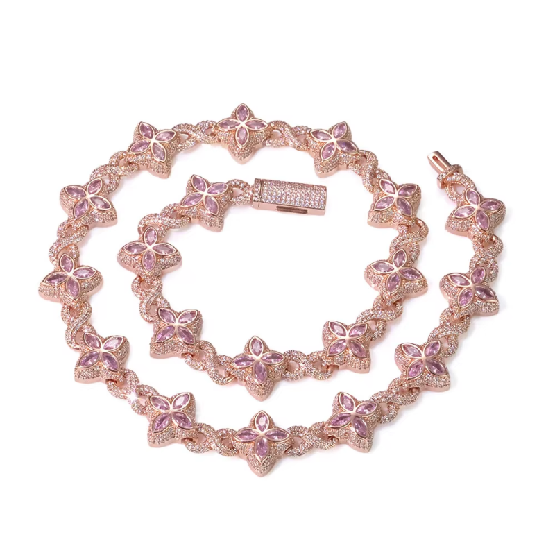 Ice Diamond Flower Cuban Chain Necklace for Men and Women