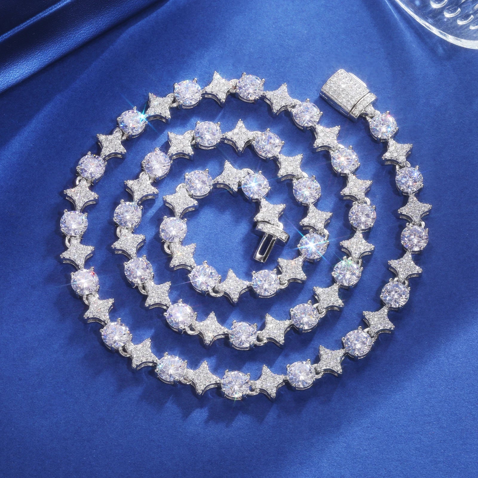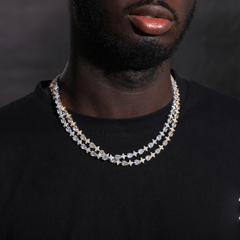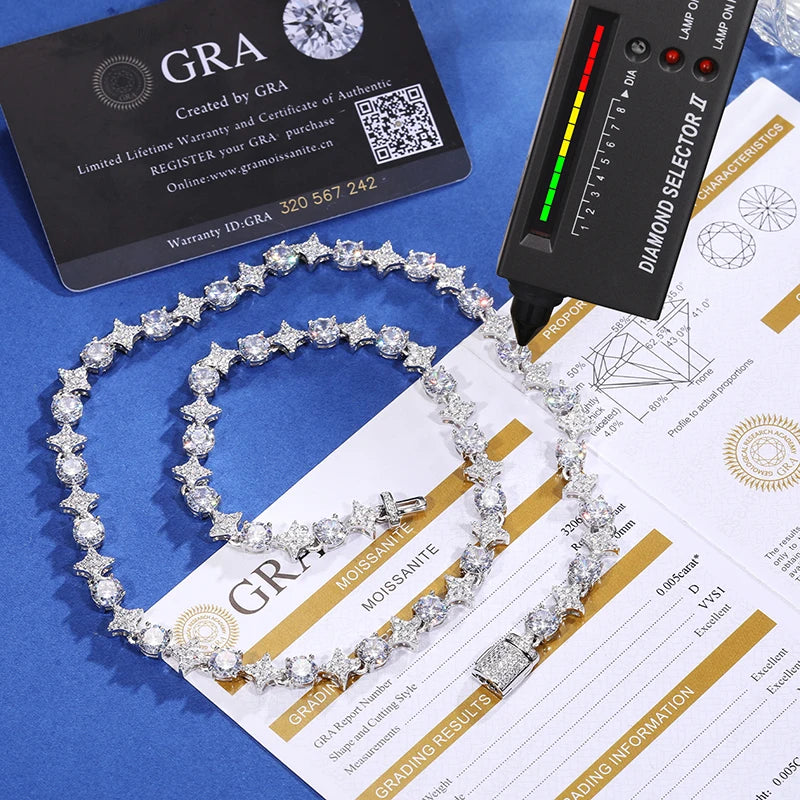 New Design Sparkling Mens Womens 6mm 925 Sterling Silver VVS Moissanite Diamond Iced Out Star Tennis Chain Necklace